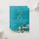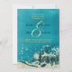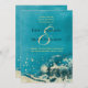 Um convite de casamento elegante e moderno, com uma tartaruga azul-aqua pintando fundo aquoso de cor d'água com uma onda de surf de ouro de champanhe caindo no fundo. Um grande e dourado com seus nomes de cheio destaca este convite para o casamento.