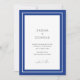 Convite moderno de casamento com um design simples, mas elegante, com seu dentro de fronteira dupla. O tema de cor é azul-safira e pode ser alterado na ferramenta de edição de design. A entrada faz esta excelente de convite para um casamento na praia no primavera ou verão.