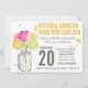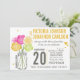 Trendy Ranunculus Rosa Mason Jar Modern Pink Tender Dispara Limão Amarelo e Cinza Corações Bonitos Padrão Geométrico Moderno na Typografia Traseira Convites de Casamento