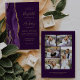 A borda esquerda deste elegante convite de casamento moderno apresenta uma cor d'água roxa, borda agitada, aparada com falso brilho dourado. O texto personalizável combina manuscrito dourado, fontes em copperplate e itálico em um fundo rico em ameixa. Substitua facilmente as cinco imagens de exemplo no verso por suas fotos e adicione um texto breve com informações adicionais (como o URL do seu site).