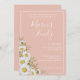 design de casamento casual bonito / Verão apresenta margarida branca margarida canto sobre fundo cor-de-rosa pincelado com blocos de texto personalizáveis brancos em fontes modernas