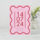 Limite mínimo rosa e vermelho ondulado salve o convite de data. Este casamento moderno salve a data do convite apresenta um código QR do site de casamento.