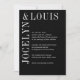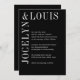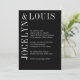 Convite moderno para casamento, com um design preto minimalista com seus nomes em uma fonte grande ao lado esquerdo e superior. As costas têm o seu monograma. Esta design é simples o suficiente para um casamento formal, mas faz uma declaração ousada.