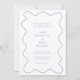 Convite de casamento contemporâneo com um design divertido com os detalhes do seu evento em um simples dentro de layout de um quadro desenhado à mão. A paleta de cores é azul empoeirada sobre um fundo branco e pode ser alterada na ferramenta de edição de design. A forma orgânica do quadro ondulado e o tom macio e úmido de azul claro deste convite fazem dele uma escolha excelente para um casamento moderno de primavera ou verão.