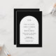 Um convite moderno para casamento, com seu monograma junto com sua dentro de detalhes de um arco de cor branca sobre um fundo preto. Este simples, mas elegante design em preto e branco clássico é excelente para qualquer estilo de casamento.