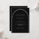 Um convite de casamento elegante. Um fundo preto com um arco na frente.