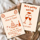 Este convite para o casamento é perfeito para o seu casamento se você está procurando um convite elegante único e fácil de ser editado. Um simples e elegante convite para modelo de casamento simples e vermelho e creme. Que apresenta um fundo leitoso puro e cremoso na frente e um bolo esquentado, desenhado à mão, com garrafa de vinho e copos de champanhe. E uma mão vermelha vívida escrevia os nomes da noiva e do noivo.