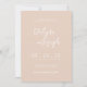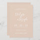 Um convite de modelo de primavera de verão de pêssego simples e elegante. Que apresenta um plano de fundo sem rodeios. E os primeiros nomes da noiva e do noivo, com letras brancas e simples, e informações editáveis com nomes de noiva e noivo e código QR personalizável no verso. Barato e é também um convite eletrônico digital. Todas as informações são personalizáveis clicando no botão personalizar. Então pegue-o e faça-o seu para que você faça você convidar noivos e excitados.