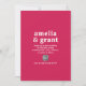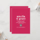 Convites de casamento de estilo moderno com um layout simples e mínimo com seus nomes em uma fonte retrô de ranhura. Abaixo estão os detalhes de seu evento em uma fonte sans serif junto com seu código QR (opcional) para que os convidados pesquisem e RSVP on-line facilmente. O esquema de cores brilhantes é vibrante Viva Magenta rosa. O código QR pode ser removido e as fontes/cores podem ser alteradas na ferramenta de edição de design.