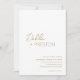 Ouro falso moderno, tudo em um convite de casamento, com um design simples e mínimo com o nome da noiva em um roteiro elegante e o nome do noivo em uma fonte sans serif contemporânea. Abaixo, no canto inferior direito, estão os detalhes do evento em um layout minimalista. A parte traseira tem seus detalhes adicionais e o Código QR, para que você possa ignorar a placa do compartimento e a placa RSVP.
