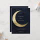O Convite Moderno de Casamento de Moody Marinho do Crescente Celeste é uma escolha bela e na moda para casais que amam o tema celeste, o tema lua e estrelas, o tema galáxias e a design moderna. Com um fundo escuro profundo coberto por sopros de ouro minimalistas (estes são efeitos digitais, não uma folha real!), ele tem um olhar sonhador e noturno estrelado, complementado pela elegante caligrafia moderna. Este convite é elegante e moderno, fazer perfeito para dar o tom de um dia memorável e mágico de casamento.
