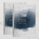 Um convite de casamento elegante e moderno, com um fundo de cristal cintilante com uma injeção de cor azul-enfumaçado e uma borda de esquerda prateada. Um formato moderno para seus nomes e data na frente somente com seus detalhes no verso.