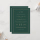 Simples convite de casamento com um design moderno, mas elegante, com seu monograma de duas letras no topo e seus detalhes cercados por uma fina fronteira. As fontes e as cores de fundo podem ser alteradas para qualquer cor desejada clicando no botão "personalizar". Um design chic e na moda que é excelente para um casal minimalista.