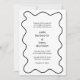 Convite de casamento contemporâneo com um design divertido com os detalhes do seu evento em um simples dentro de layout de um quadro desenhado à mão. A paleta de cores é preta e branca e pode ser alterada na ferramenta de edição de design. A forma orgânica do quadro ondulado faz deste convite uma escolha excelente para um casamento moderno.