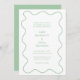 Convite de casamento contemporâneo com um design divertido com os detalhes do seu evento em um simples dentro de layout de um quadro desenhado à mão. A paleta de cores é verde estável sobre um fundo branco e pode ser alterada na ferramenta de edição de design. A forma orgânica do quadro ondulado e o tom macio e úmido de verde claro deste convite fazem dele uma escolha excelente para um casamento moderno de primavera ou verão.