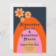 Traga uma diversão vintage floral de 1970 com uma reviravolta moderna para o seu casamento com este convite de casamento floral minimalista dos anos 70. Legal retro vintage daisy arco arco-íris design na tangerina laranja de damasco, rosa, amarelo mostarda e azul Marinho com um roteiro de tipografia de ranhura que é fácil de personalizar usando os modelos simples. Ideal para dar o tom de um primavera de verão ou de outono. Arte original da artista Catherine Sweetman