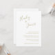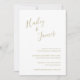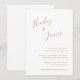 Convite moderno de casamento com um design simples com seus nomes em um roteiro elegante manuscrito no canto superior esquerdo e seus detalhes de evento no alinhamento direito no canto inferior direito. Todos os elementos de design estão em dourado falso e podem ser alterados na ferramenta de edição de design. A letra chic da mão acrescenta um toque romântico a esta design minimalista.