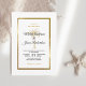 Convide seus hóspedes para ajudá-lo a celebrar seu dia especial com este convite elegante que inclui textos modernos, preto e dourado, incluindo palmeiras artísticas e moldura de ouro metálico na frente do cartão. Um fundo branco está na frente e atrás.