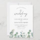 Um convite de casamento moderno com design simples, elementos de vegetação de eucalipto aquarela em estilo elegante caligrafia e cor de salva.