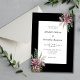 O Convite Moderno para Casamento Negro e Branco com Acentos Florais Roxos Elegância encontra o estilo contemporâneo com este maravilhoso convite de casamento preto e branco, adornado com sotaques florais púrpuros e suaves, mas vibrantes. Projetado para o casal que aprecia a sofisticação moderna com um toque de charme floral, esse convite apresenta linhas limpas e uma paleta branca e preta minimalista, fazer os delicados florescimentos roxos verdadeiramente pop. Equilíbrio perfeito entre chic e eterno, os detalhes florais evocam uma sensação de romance enquanto mantêm uma estética elegante e refinada. Ideal para casamentos formais e modernos, este convite dá o tom para uma celebração que é tão na moda quanto sentida. Impresso em estoques de cartolina de alta qualidade, este convite exude luxo e vai causar uma impressão duradoura aos seus convidados. Quer você esteja hospedando um grande caso ou uma reunião íntima, este convite de casamento preto e branco com flores roxas é um reflexo perfeito de sua única história de amor.
