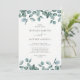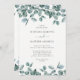 Estes convites para o casamento apresentam um design botânico de folha de folha de eucalipto de cor aquática moderna. Personalize com seu texto. Material de papelaria correspondente também disponível.