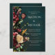 Bela buquê de burgundy e creme de flores misturadas a verdes que cercam fontes modernas feitas em branco sobre um fundo elegante e profundo foram usadas para criar este convite moderno para o casamento. Perfeito para qualquer casamento. Coordenando o verso verde. Absolutamente espantoso!