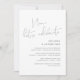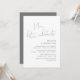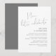 Este é o convite do casamento para a festa de fuga, com design minimalista / script cinza escuro minimalista (Agora vamos celebrar)