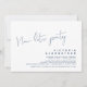 Este é o cartão de convite da festa de casamento fugitivo, com design minimalista / script azul marinho minimalista (Agora vamos convidar para a festa)