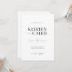 COLEÇÃO KRISTEN. Convocação de Casamento Moderno Minimalista. Recursos, detalhes modelo com código QR na parte traseira. Tipografia negra sobre fundo branco.