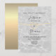 Convite de casamento moderno na praia, simples, elegante, minimalista, com coração de corda em folha de ouro e águas cristalinas do oceano. Escolha perfeita para casamentos contemporâneos de verão.