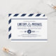 Combinando a clássica paleta náutica de cor azul-marinho e branco com estilo limpo e moderno, nossa suíte de convite para casamento moderno náutico dá eterno estilo ao seu casamento de verão ou litoral. Design apresenta uma borda de faixa de marinho no topo e na parte inferior, uma faixa decorativa e a linha de data, além de letras ousadas e modernas.