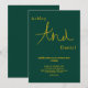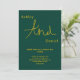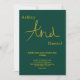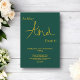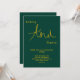 Este convite de casamento verde e dourado é perfeito para um casamento moderno. O design simples apresenta caligrafia dourada elegante em um fundo verde.