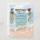 Design apresenta uma praça colorida impressa e um elemento floral verde em tons de verde-bronzeado e branco sobre uma paisagem oceânica de praia com cobertura branca e floração branca de marsala e um roteiro de caligrafia ou escrevendo de tipo. Excelente para as comemorações do casamento!