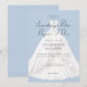 Suave e romântico, este design de convite "algo azul antes de mim", chá de panela, apresenta um vestido branco de casamento centrado num fundo azul pálido sob uma camada branca transparente e clara. Elegante, simples e romântico. Criado pela imprensa simplesmente de farmácia.