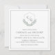 Este simples e elegante convite de casamento quadrado apresenta uma crista monograma para as iniciais da noiva e do noivo e é embelezado com uma coroa de louros do ramo da oliveira em tons verdes de cor prateada. A elegância clássica e o sutil esquema de cor prateada fazem dela uma escolha maravilhosa para casamentos em qualquer estação do ano. Personalize o modelo de texto fácil de usar com suas iniciais e detalhes do casamento.
