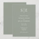 Este convite de casamento minimalista chique pode ser personalizado com as iniciais do seu monograma e detalhes do dia do casamento em um fundo verde salvia. Projetado por Thisisnotme©