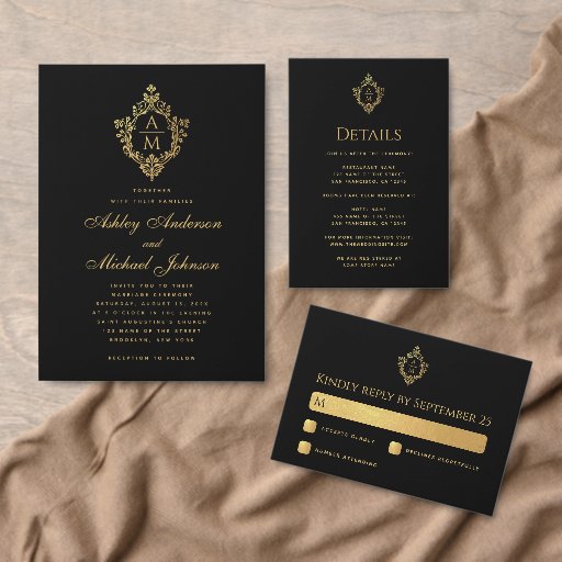 Black Faux Gold Monogram in Crest Wedding SuiteCriado por Artifex Designs