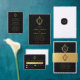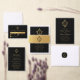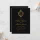 Convites Casamento Monograma Negro Faux Dourado Crest Vinta