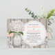 Os convites monogrammed do CASAMENTO do frasco de pedreiro do estilo rústico bonito com as flores brancas do hydrangea e uma cor damasco de madeira da cerca e da antiguidade atam o fundo e o olhar coral costurado da fita da luz pálida do pêssego projeta. Estes convidam podem ser personalizados com as iniciais e o monograma dos noivos no frasco de pedreiro. Estes convidam são perfeitos para um país, uma casa da quinta, um partido de jardim ou um casamento do estilo do barnyard. Projetado por Chrissy H. Estúdio, LLC. Todos os direitos reservados.