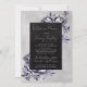 Convite para Casamento Floral Escuro - apresenta cinzas leves e fundo texturizado preto com flores roxas e cinzas e fontes góticas. Perfeito para qualquer casamento de outubro ou Halloween. Coordena-se com a coleção Floral Escura.
