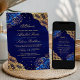 Encontrem seus convidados com este elegante tudo em um convite de casamento islâmico com lindas flores azuis e um lugar intrincado com o Código QR para RSVP on-line. Basta adicionar os detalhes do seu evento neste modelo fácil de usar para torná-lo um convite de tipo único.
