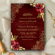 Encontrem seus convidados com este elegante tudo em um convite de casamento islâmico com lindas flores vermelhas e um lugar intrincado com o Código QR para RSVP online. Basta adicionar os detalhes do seu evento neste modelo fácil de usar para torná-lo um convite de tipo único.