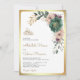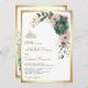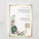 Incomodem seus convidados com este elegante, tudo em um convite de casamento islâmico com lindas flores cor-de-rosa e esmeraldas verdes com código QR para RSVP online. Basta adicionar os detalhes do seu evento neste modelo fácil de usar para torná-lo um convite de tipo único.