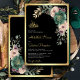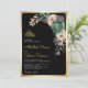 Incomodem seus convidados com este elegante, tudo em um convite de casamento islâmico com lindas flores cor-de-rosa e esmeraldas verdes com código QR para RSVP online. Basta adicionar os detalhes do seu evento neste modelo fácil de usar para torná-lo um convite de tipo único.
