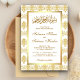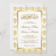 Encontrem seus convidados com este elegante convite de casamento com uma falsa borda de folha de ouro e 'Bismillah' na caligrafia árabe contra um belo fundo de damasco de ouro. Basta adicionar os detalhes do seu evento neste modelo fácil de usar para torná-lo um convite de tipo único. Sacudir a placa para revelar uma textura falsa de folha de ouro na parte traseira da placa.