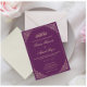Convite para casamento muçulmano da Nikah. Fundo roxo sólido com letra dourada com script elegante na frente da placa. Há um design de rolagem barroca de luxo no canto da armação. A cor deste cartão de convite pode ser personalizada e você pode alterar o nome, a data e o endereço gravados. Na segunda placa, você pode adicionar texto se quiser. SuaLineForDesign.