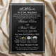 Cartões de convite para o casamento do Moderno Bismillah Calliografia Negra e Branca da Nikah Islâmica. Projetadas para capturar a beleza eterno de uma paleta de cores preto e branco, essas cartas são perfeitas para casais que buscam um olhar minimalista, mas sofisticado, para seu dia especial. Esta placa apresenta todo o planejamento de eventos especiais com horas, ícone de relógio representa Recepção, e também tem plano de janto e outros ícones personalizados que também podem ser substituídos. Este Cartão é perfeito para todos os casamentos árabes, marroquinos, persianos, turcos, paquistaneses, indianos e outros islâmicos. Você pode pedir este cartão para Nikah, Noivados Walima/Recepção e muito mais! Bismillah Calliografia: A peça central deste convite é a elegantemente renderizada caligrafia Bismillah (em nome de Alá, a Mais Graciosa, a Mais Maciça). Serve como uma benção divina para o seu casamento, convidando as bênçãos de Alá para acompanhar sua jornada.