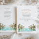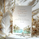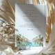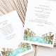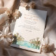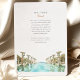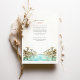 Convide seus convidados para uma comemoração exótica inesquecível, com este maravilhoso convite de casamento com aquarelas, que inclui a icônica Piscina Oasis em The Mulia, Mulia Resort & Villas Nusa Dua, Bali. A trabalho de arte capta lindamente a serena infinidade piscina, alinhada com elegantes estátuas balinesas, do tamanho da vida, de mulheres em tons leves de pedra/bege, segurando graciosamente boliches na cabeça. A turquesa cristalina e as águas aquáticas da piscina se esticam em direção a um vislumbre do horizonte oceânico. Criada em forma de aquarela macia e sonhada, a cena é moldada por uma folhagem tropical exuberante em vários tons de verde, possivelmente incluindo frondes de palma e outras plantas exóticas, com pingões balineses clássicos em creme e bege com detalhes de telhado de cor terracota no fundo. Esse convite exude luxo e tranquilidade, perfeito para um casamento de destino glamouroso em Bali ou para casais que buscam um tema exótico, sereno e opulente. A frente apresenta elegantemente seus detalhes de casamento, enquanto o lado inverso oferece "Os Detalhes Mais Finos" para informações de convidado.