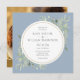 Apresentando delicadas folhas de cor-de-água verde em um fundo azul empoeirado, este único convite de casamento botânico na moda pode ser personalizado com sua informação especial sobre o dia do casamento e foto no verso. Projetado por Thisnotme©