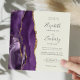 O lado esquerdo deste elegante convite de casamento quadrado moderno apresenta uma cor d'água púrpura e borda agitada com falsa brilha dourada. O texto personalizável combina a escrita manual de cinzas de carvão, as fontes em copperplate e itálico em um fundo de marfim. O verso apresenta um design de agate roxo e dourado correspondente.
